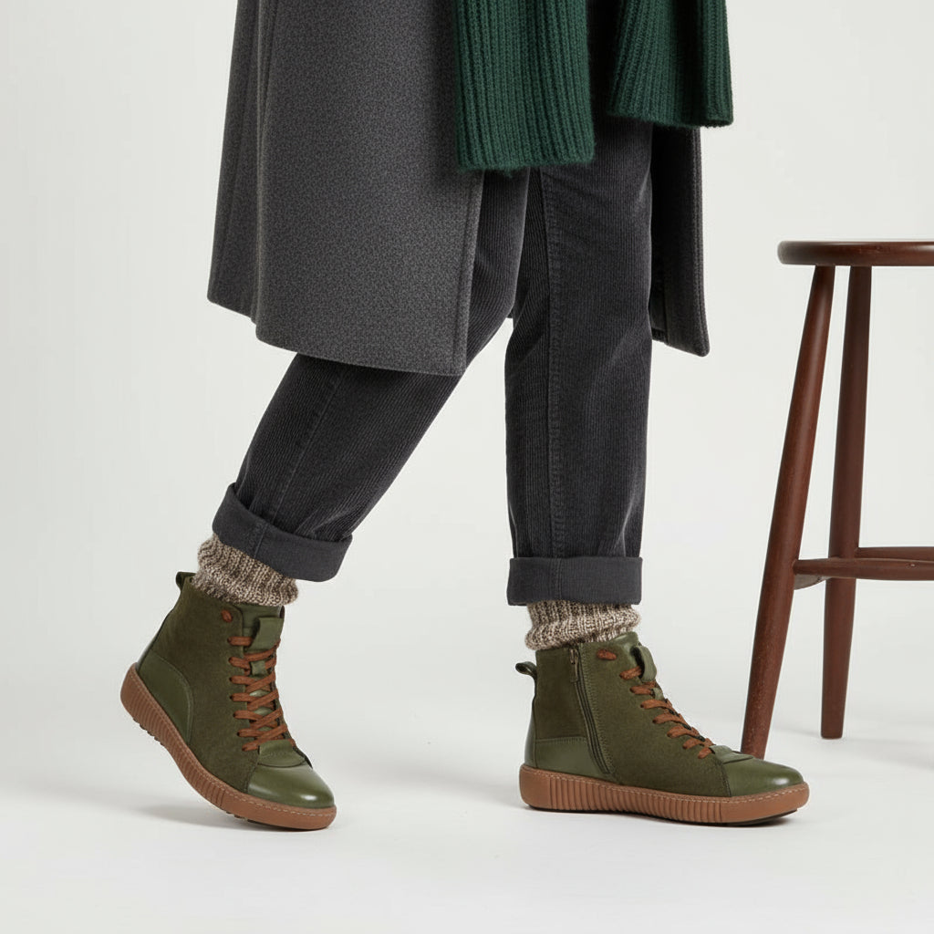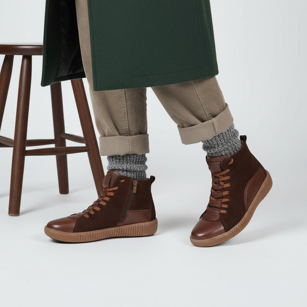 Der Amen-Stiefel ist ideal, wenn Sie eine elegante und dennoch dezente Option für die kälteren Monate suchen. Seine neutralen Töne und minimalistischen Linien machen ihn zu einer vielseitigen Ergänzung Ihrer Garderobe. Ob schick für die Arbeit oder lässig fürs Wochenende – dieser Stiefel vereint Schlichtheit und Klasse.