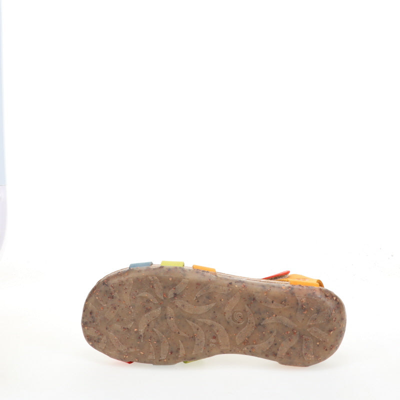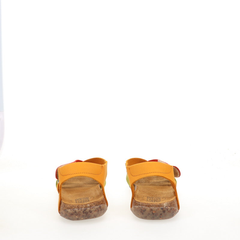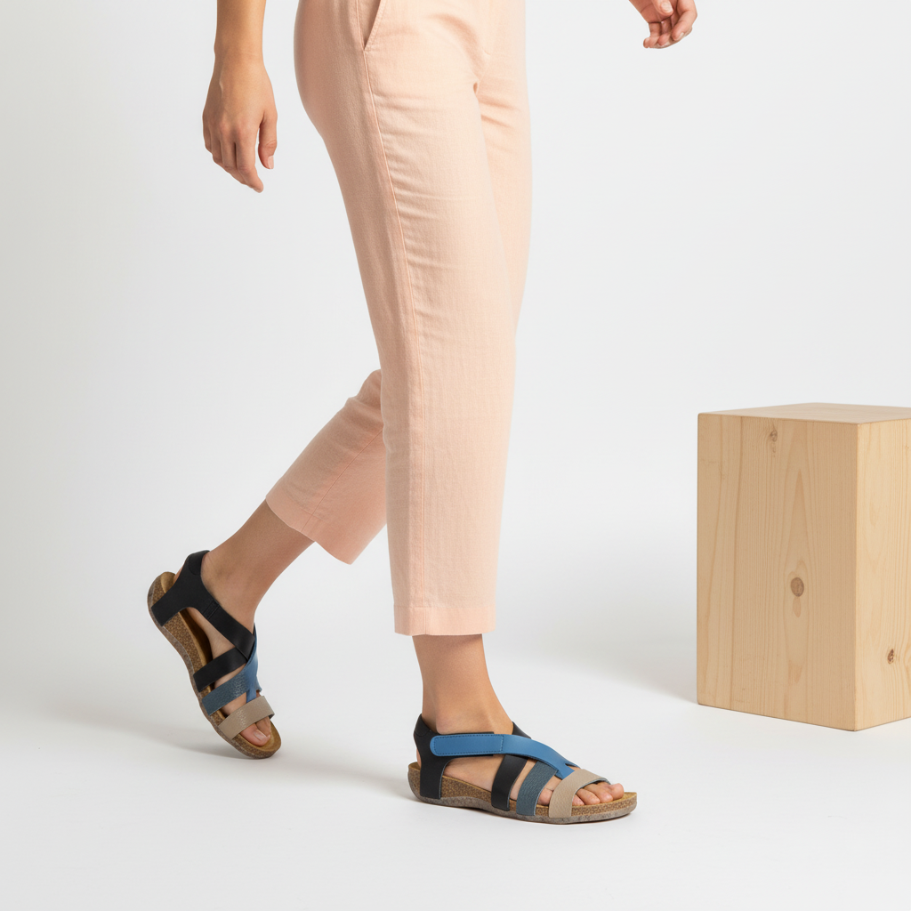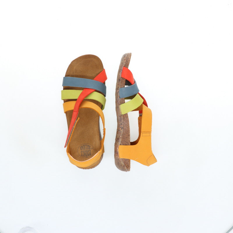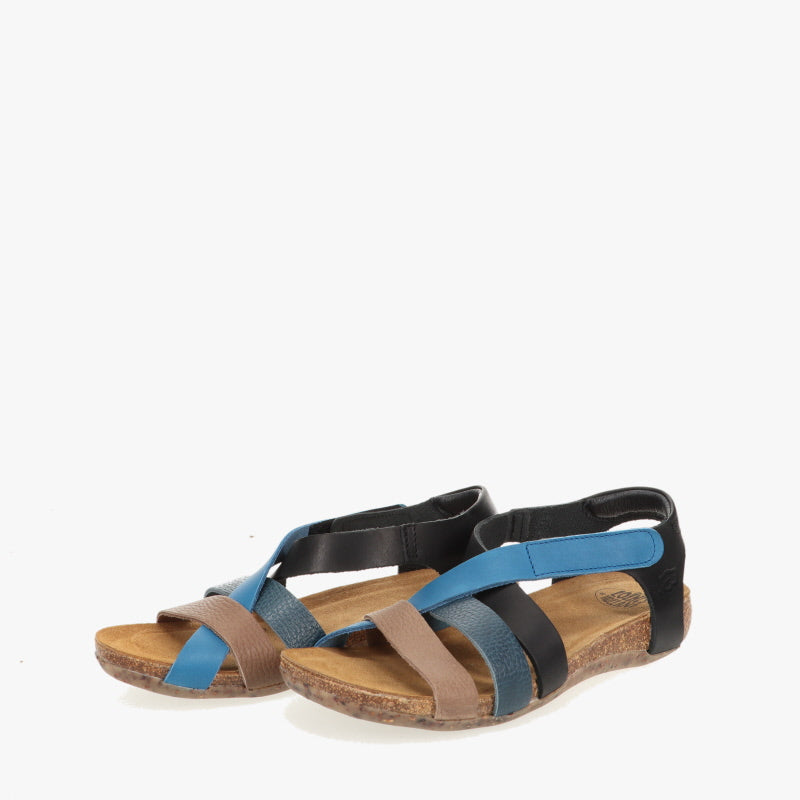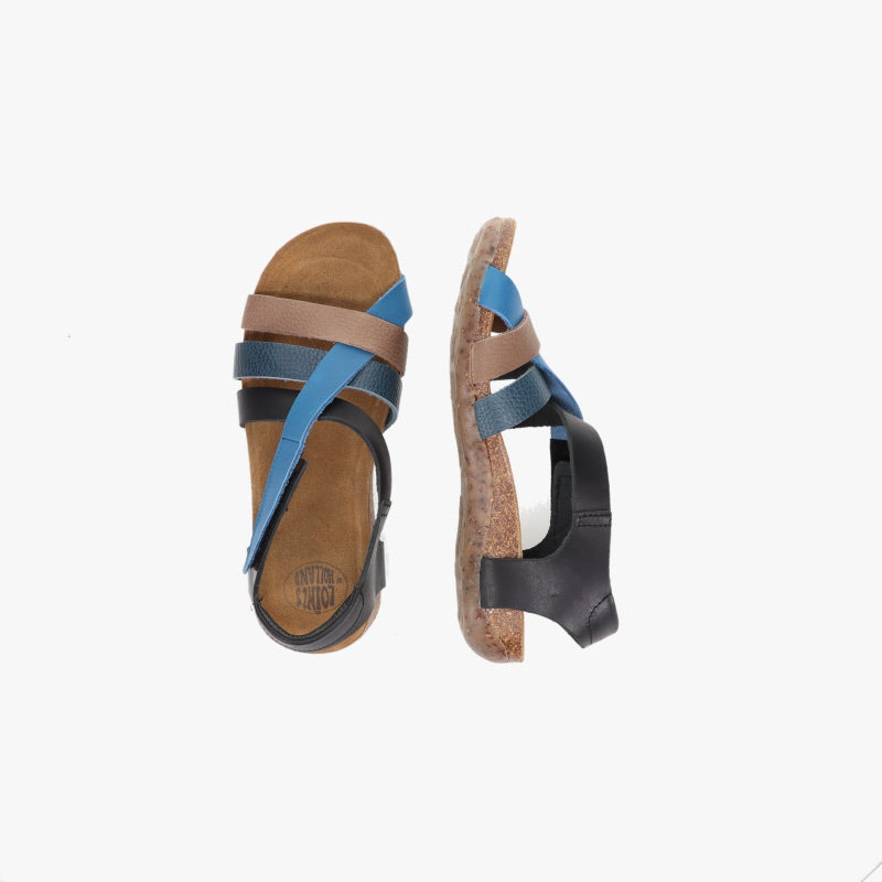 Deze sandaal heeft een speelse uitstraling door de gekruiste bandjes die sluiten met klittenband. Daarnaast biedt de zool veel comfort.