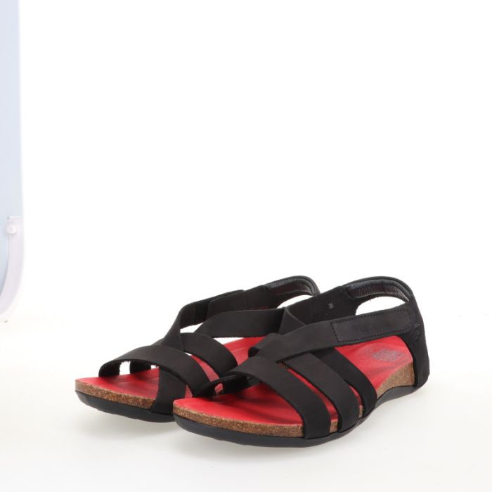 Deze sandaal heeft een speelse uitstraling door de gekruiste bandjes die sluiten met klittenband. Daarnaast biedt de zool veel comfort.