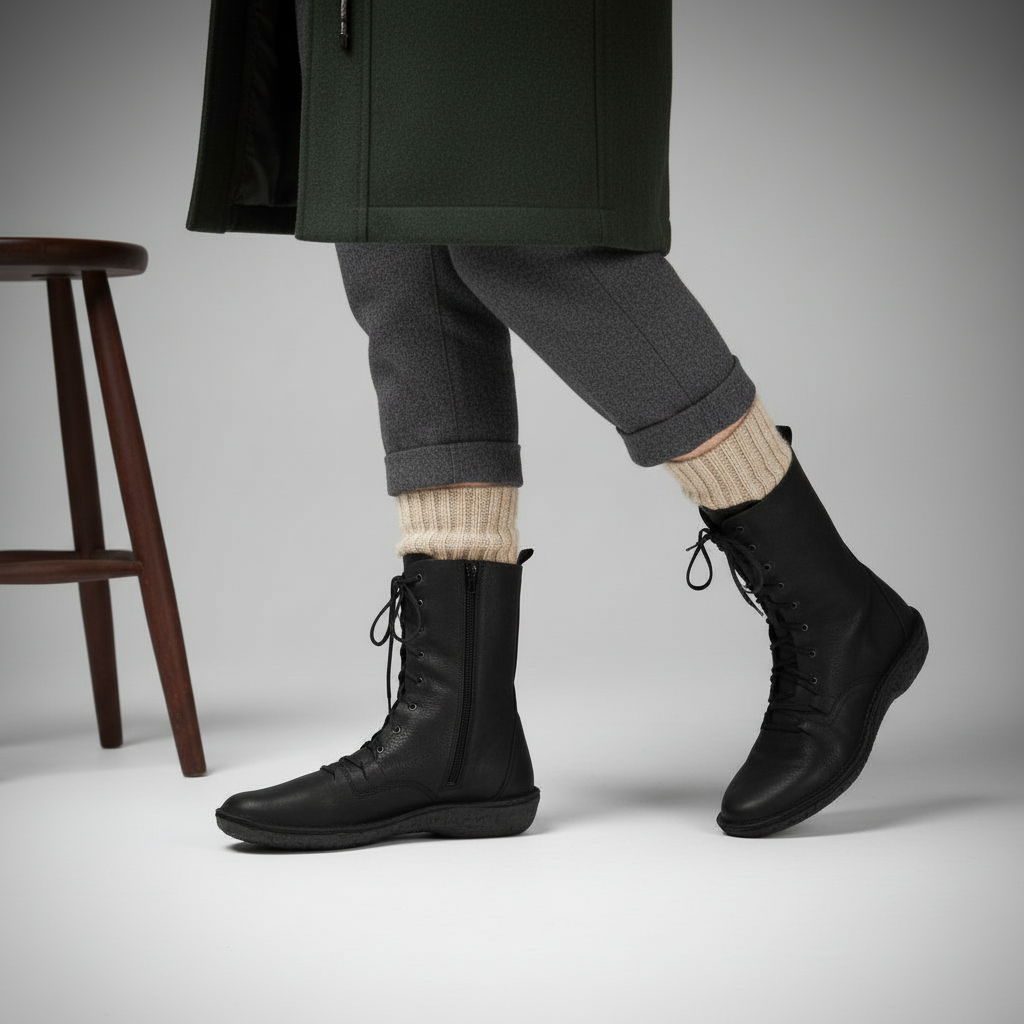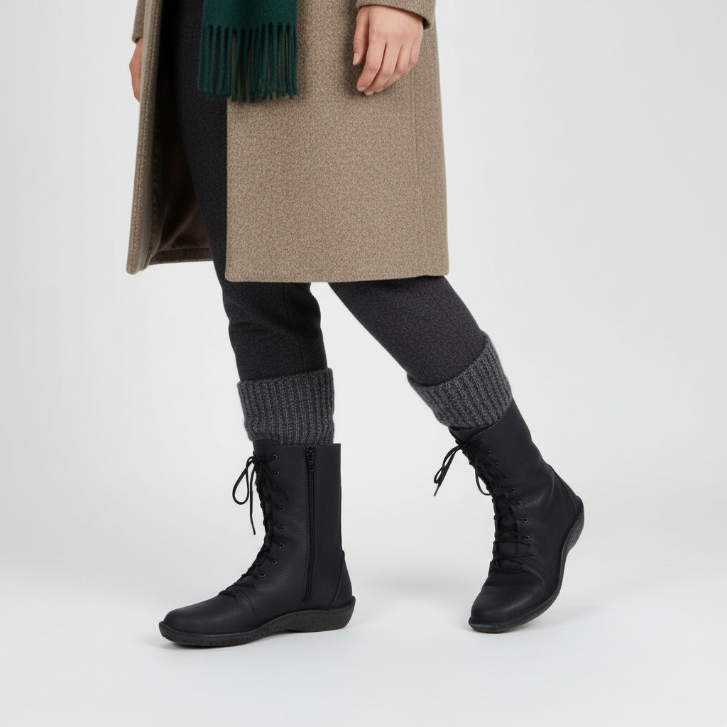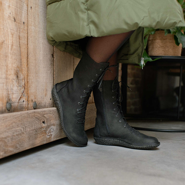 Vliegert, een hoge laars uit de veelzijdige Fusion groep, combineert functionaliteit met eigentijds design voor het winterseizoen. Met zowel veters als een ritssluiting biedt Vliegert veelzijdige stijlopties en gemakkelijke toegankelijkheid. De lage, comfortabele zool en de uitneembare leren binnenzool voegen comfort toe aan de stijl. Met een gemiddelde breedtemaat biedt Vliegert een uitgebalanceerde pasvorm voor dagelijkse elegantie
