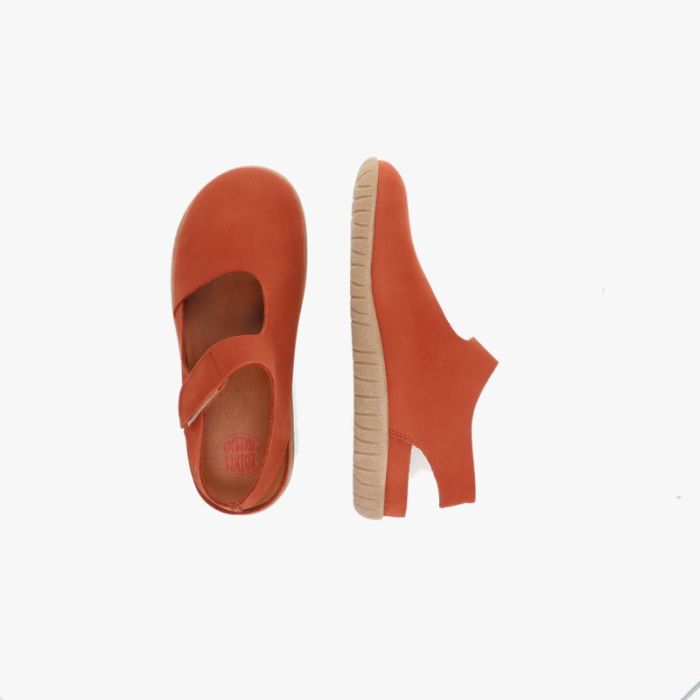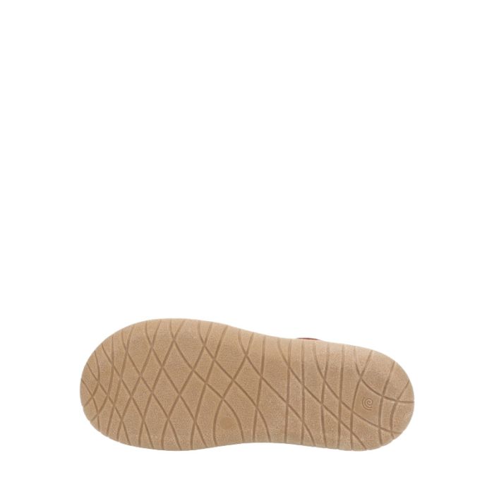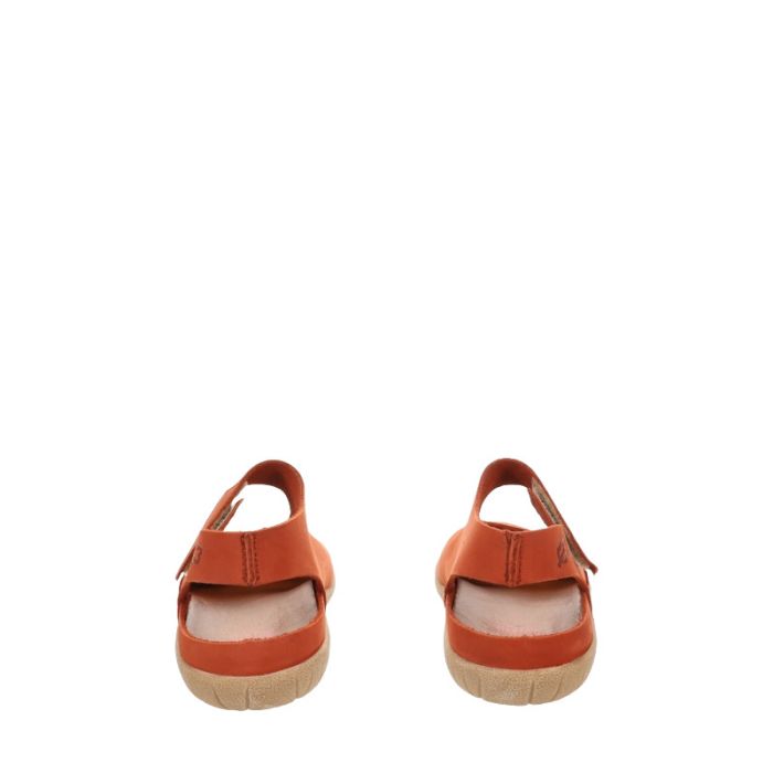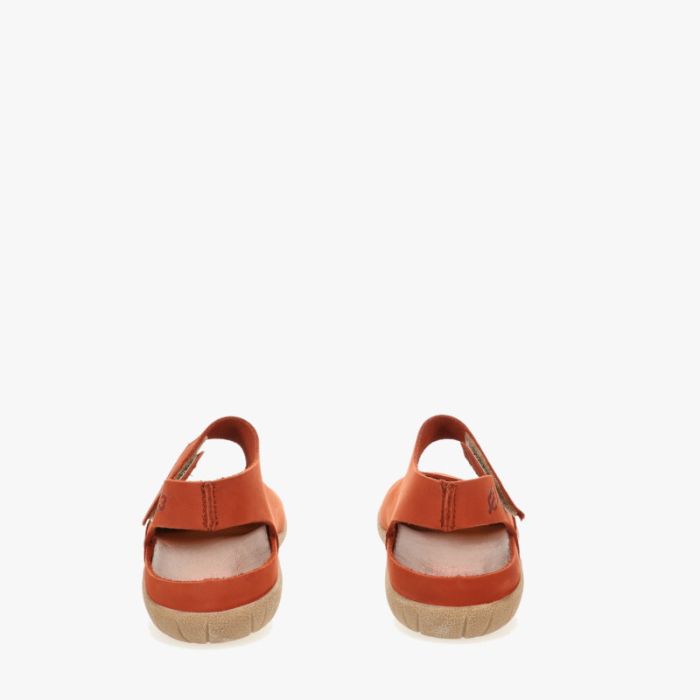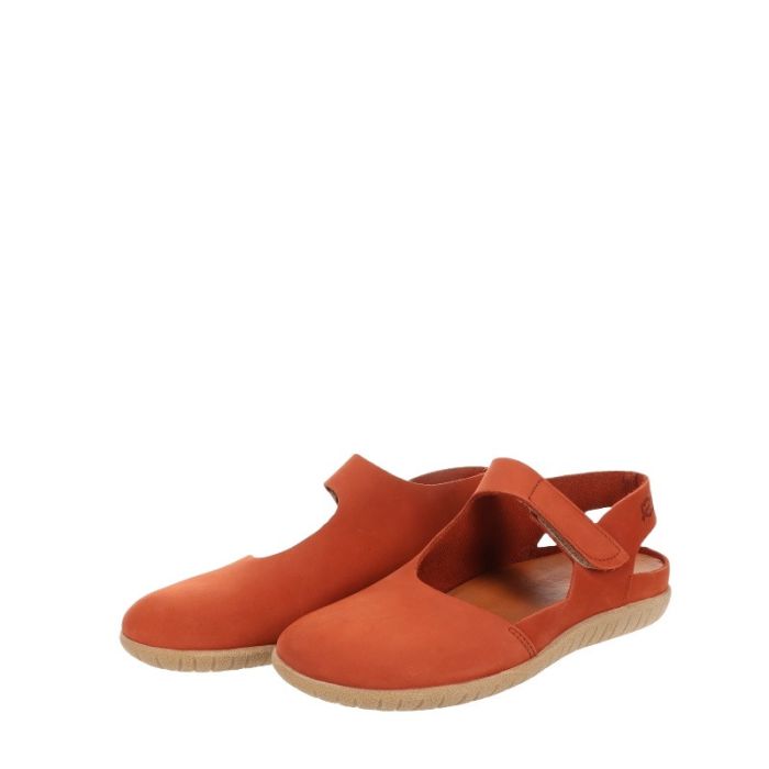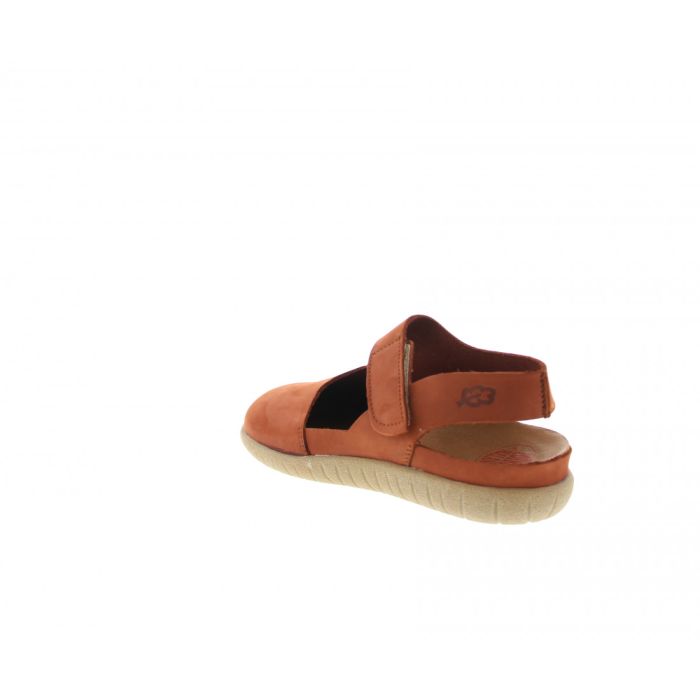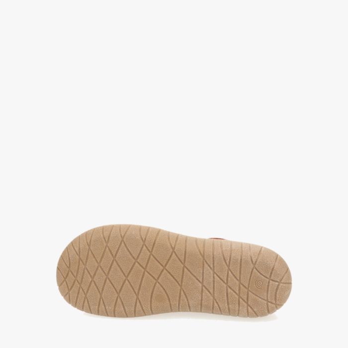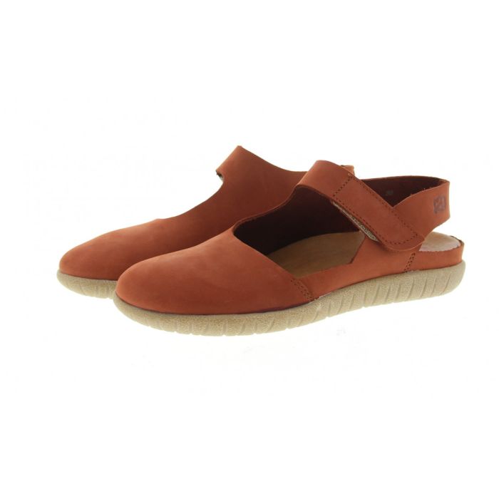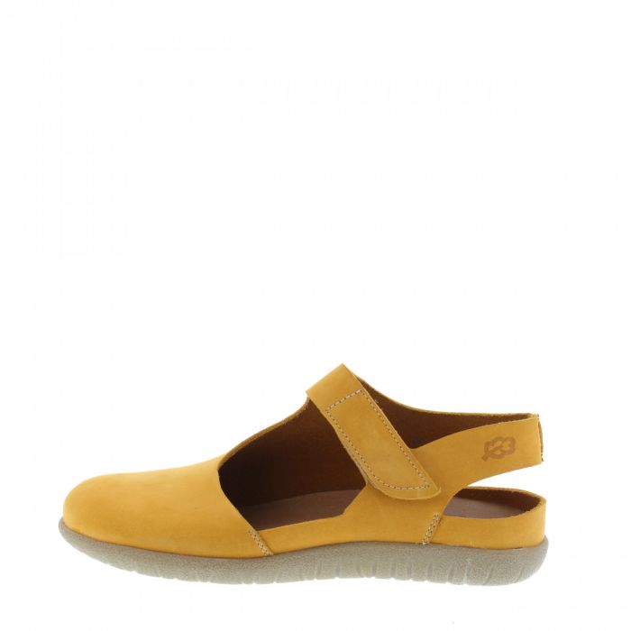 Biezelinge is een comfortabele, platte sandaal met een gesloten neus en een verstelbare klittenbandsluiting rond de enkel.