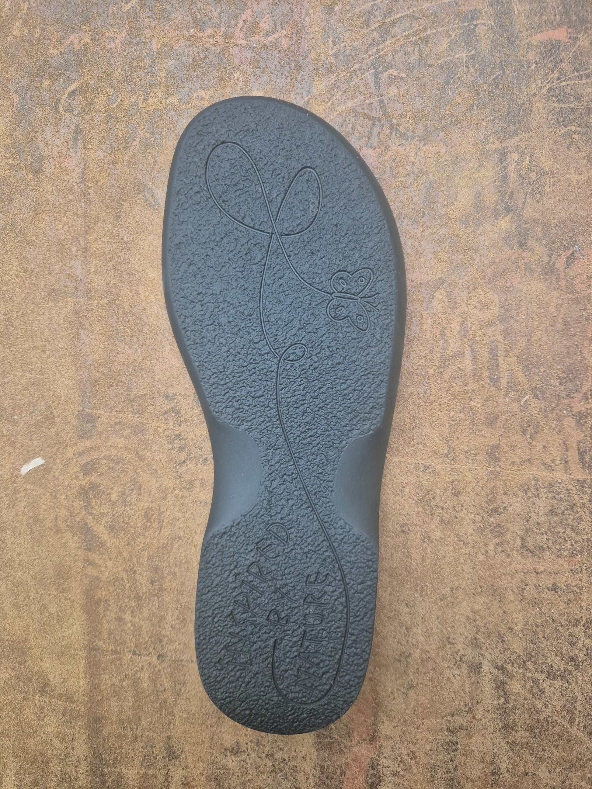 Die Sohlen der Triathlon-Gruppe gehören zu unseren älteren Gruppen und zeichnen sich durch ihre robuste Passform und ihr zeitloses Aussehen aus. Schuhe wie der Termunten verwenden diese Sohle. Diese Sohlen sind auf der Unterseite mit einem Schmetterlingsmotiv versehen.