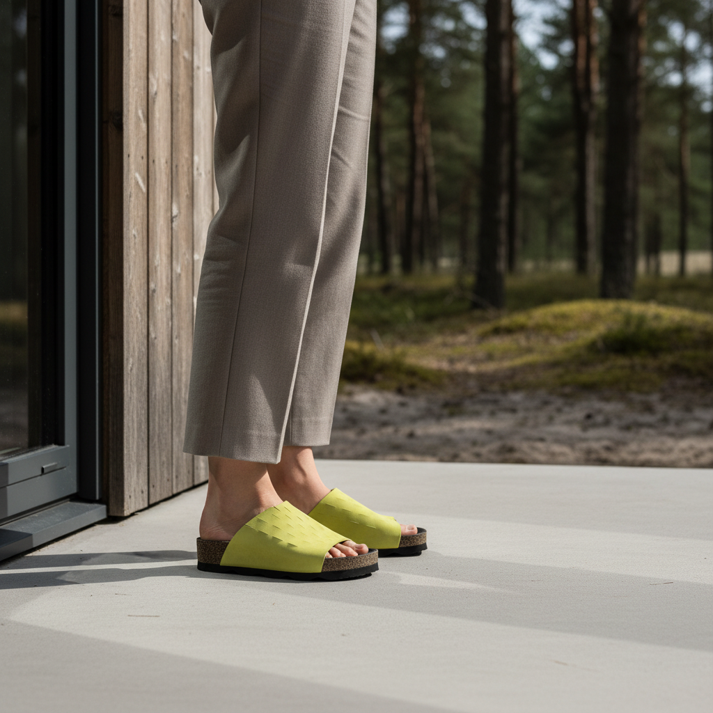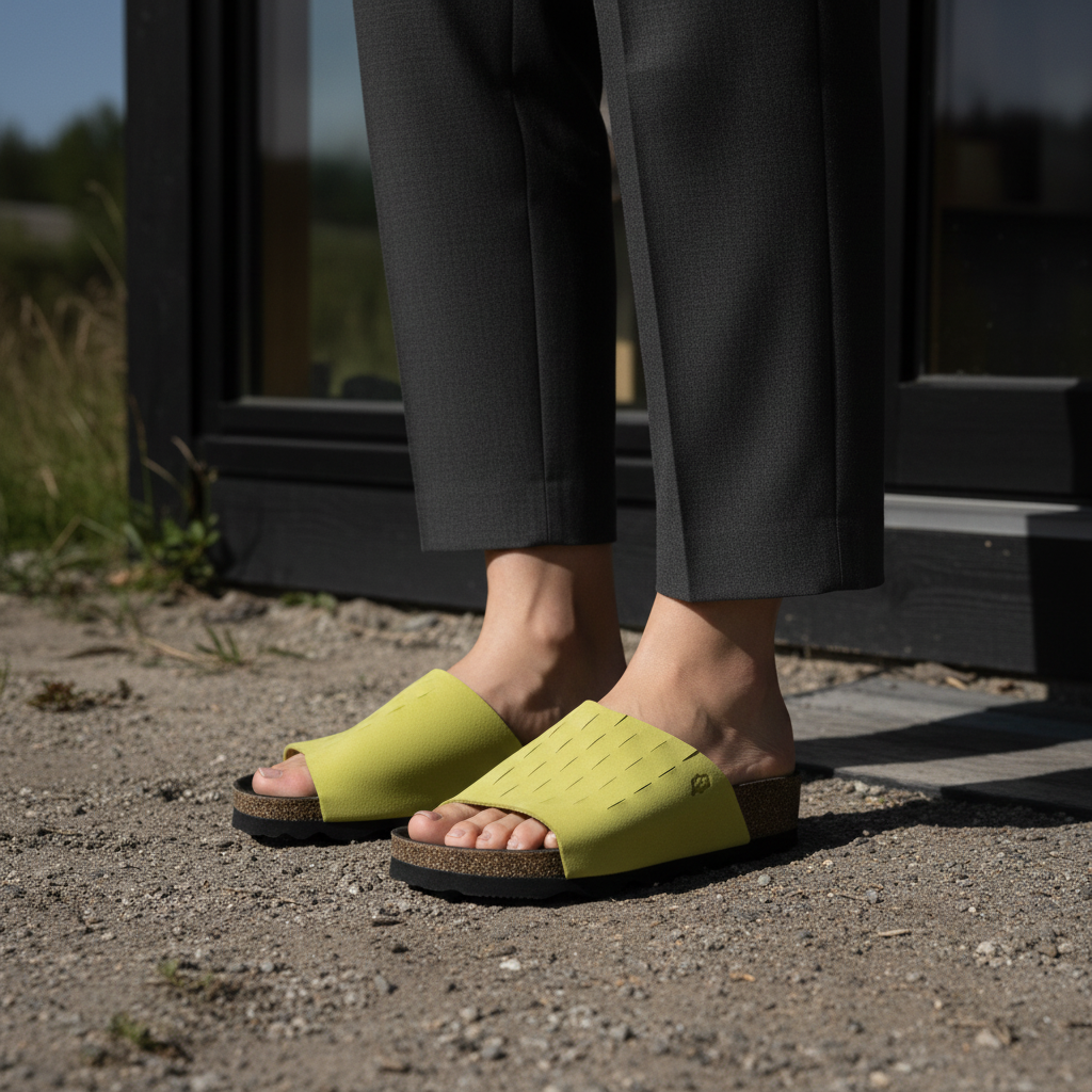 De Deciso-groep is een lichtgewicht constructie en is voorzien van een zacht voetbed en een buitenzool van gerecycled kurk.