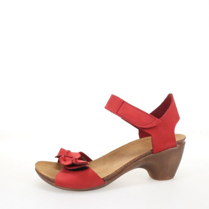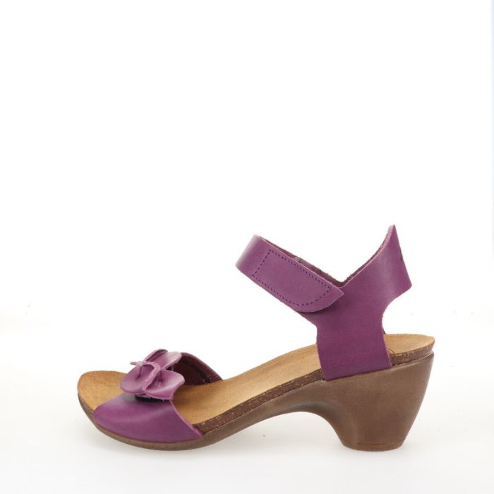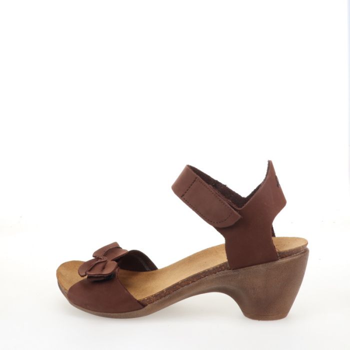 Nispen is een prachtige sandaal met hak en twee verstelbare bandjes op de voorvoet, versierd met vormen als bladeren.