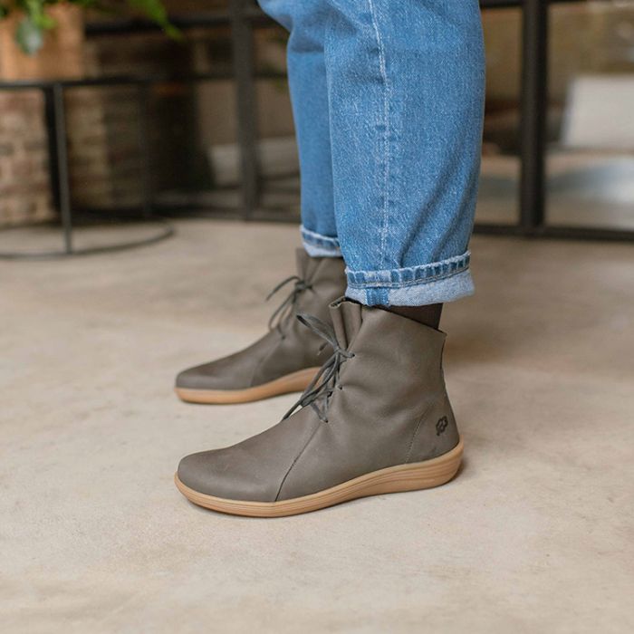 Cranendonck is een sportief ogende enkellaars met veters. Het gladde leer vouwt mooi op als je de veters van de laars strikt, zodat deze perfect om je voet aansluit.